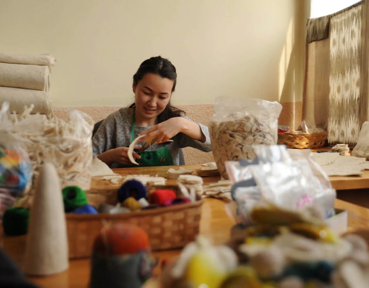 We work with amazing women artisans in Kyrgyzstan, and have expanded our collaborations to artisans in India, Palestine, Morocco, Afghanistan, Madagascar, Germany, Peru, and the Philippines.