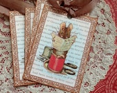 I seriously love creative energy and making things with my hands, learning new techniques, and exploring visual arts in many forms. My parents are both very creative people, and I owe them both a huge debt of gratitude for allowing me to join in with whatever craft/art they dabbled in when I was young. They helped foster my true visions of whatever I could create, and helped bring them to life for me. My etsy shop started out with lots of varied things I had made - wall hangings, jewelry, wool felt pincushions, and one of my favorites, covered journals. I still work with needle and thread whenever I can, make quilts, knit and crochet, re-do old wood frames and furniture, create mixed media art and make jewelry. I have a serious love and reverence for old and worn things, and am the family repository of old family photos, keepsakes and memorabilia. My shop has evolved into selling mainly tags and notecards of my images, along with my covered journals, which became an easy way for me to showcase my little bitty works of art - digital creations made from vintage images gathered along the way. Its great fun and a continuing challenge to combine vintage images with other elements to come up with a beautiful new collage.