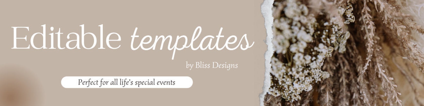Welcome to BlissDesignsPaperie. Here you will find unique DIY editable stationery templates for Baby showers, Bridal showers, Weddings, Birthdays, etc. These templates are so easy to use. You'll receive access just after purchase and you can start personalizing right away. All templates can be easily edited using any device, following link You will receive after Your purchase.