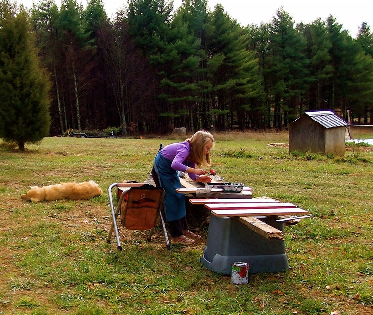Heidi, my most excellent helper, has agreed to a goodly sum for painting all my background colors. -
