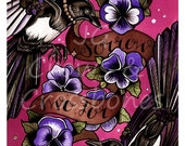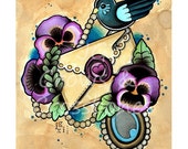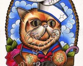 Sie werden viele Kunstwerke finden, die von traditionellen und neo-traditionellen Tattoos, Vögeln und Katzen inspiriert sind.