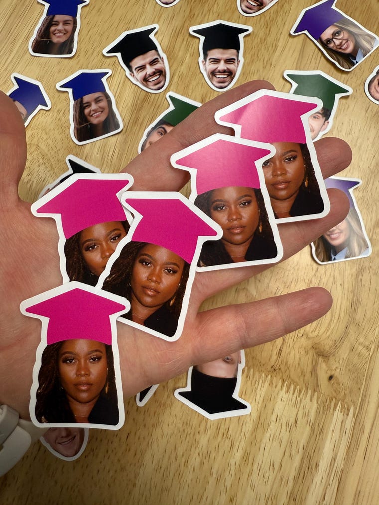 Our face confetti is 2 inches tall and doubles as a really high-quality sticker that will last for years! -