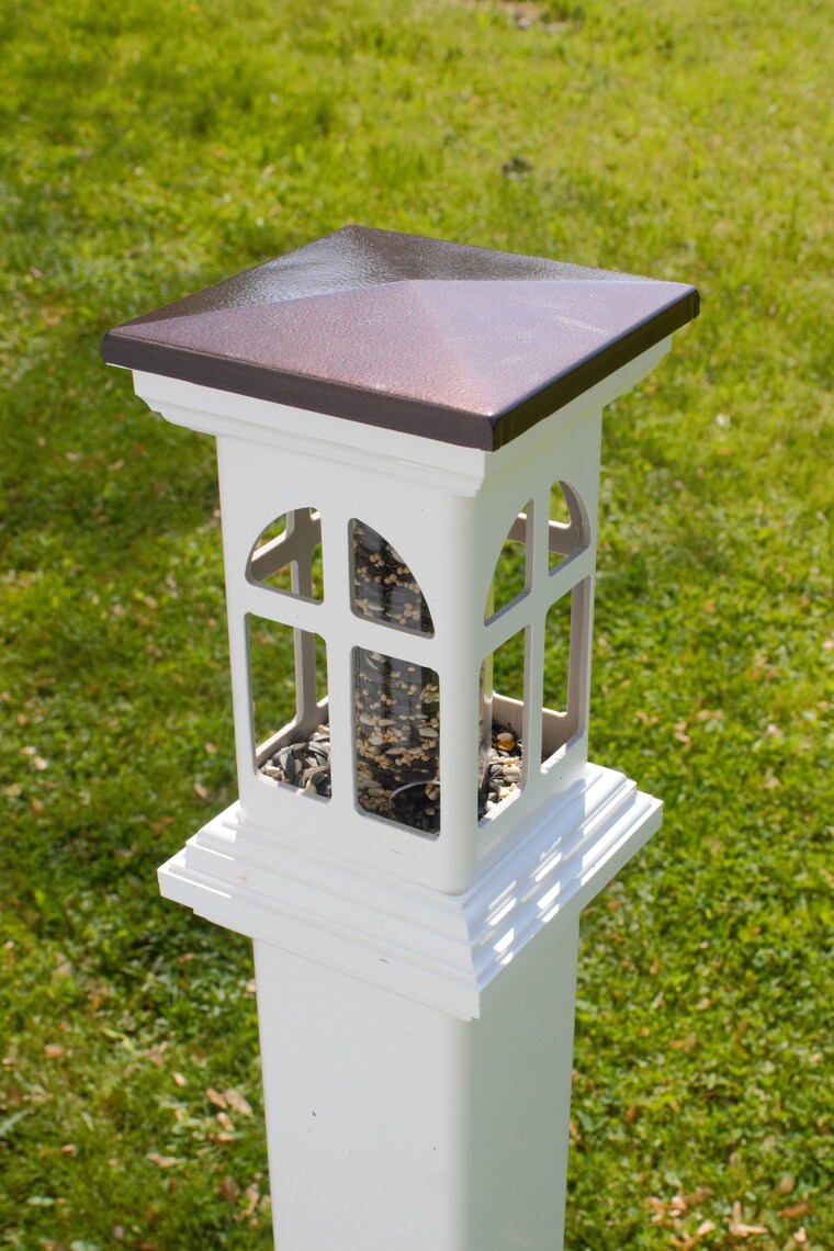 On this site most of the products sit on top of a 4" or 5" square Vinyl/PVC post,