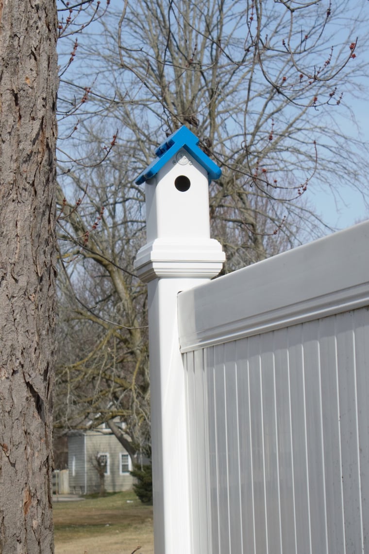 My birdhouses can be hung on a tree or set on top of a vinyl post.