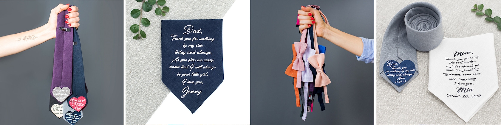 At the moment, I and my team design and make ties, bow ties, pocket squares, and suspenders of different sizes. Now we are able to craft personalized gifts, personalized bow ties, personalized ties, personalized suspenders, and personalized pocket squares. Personalization will work perfect for Father of the Bride gifts, Groomsmen gifts, Boyfriend gifts, Husband gifts, Boy and Toddler gifts, and simple gifts for him.