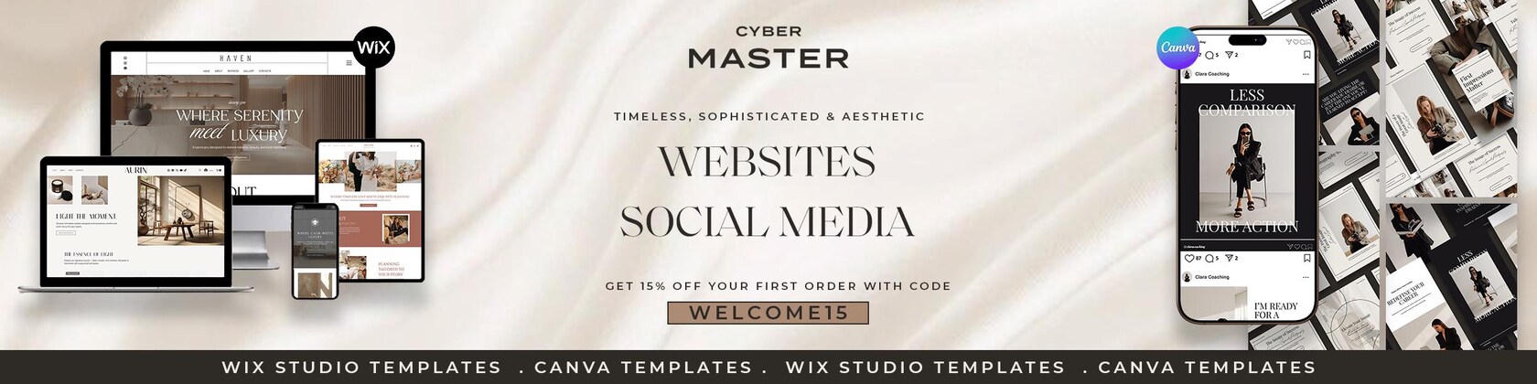 Here you'll find editorial-quality Wix website templates, wedding invitations that capture emotion, branding that conveys presence, and social media templates that brighten up any feed.
