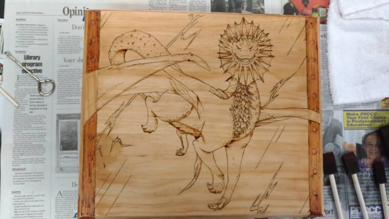 Our first Wood burning commission. The box was supplied. Still a work in progress.