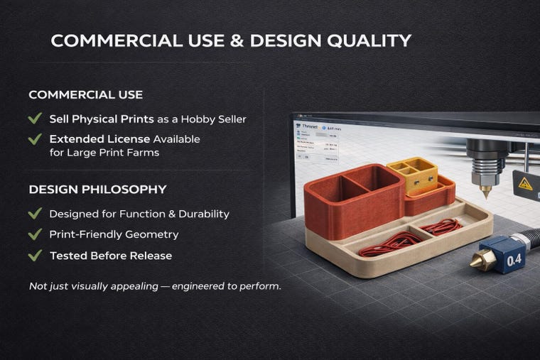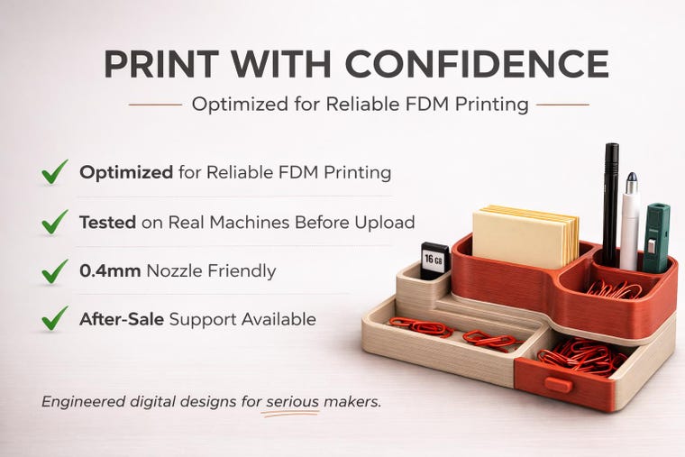 Every product listed in this shop begins as a carefully designed digital file (STL / 3MF). Each model is optimized for clean printing, durability, and real-world use. Before listing, every design is tested, refined, and printed to make sure it performs reliably on standard 3D printers.