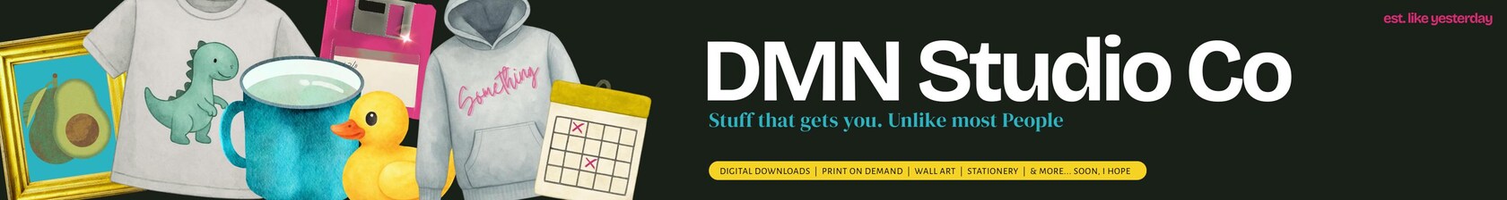 My first designs were merely an experiment but then I hit a flow state I hadn't felt in years, and here we are. That feeling is what I'm here to share, one download at a time. I make things for people who appreciate a little wit with their stuff. Dry humor optional but encouraged.
