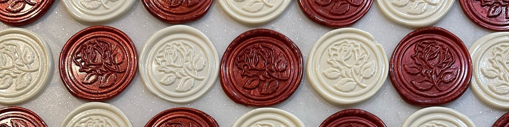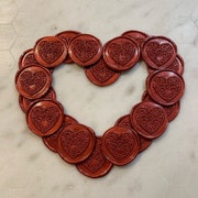 5 na 5 gwiazdekThese are SO cute!! They come in a pretty little drawstring pouch, and each one is super crisp in detail and a perfect deep red color. There’s even peel-and-stick adhesive on the back, which will make putting them on our wedding invites a breeze. Love them!!