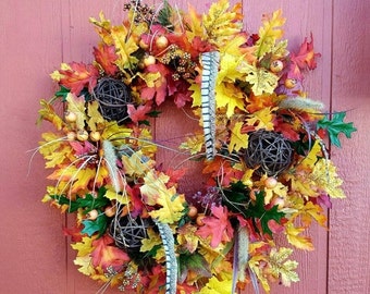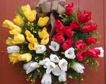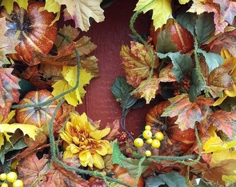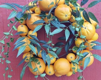This wreath is even better than it appeared online. The colors are very vibrant, and it's a great size for a front door! It shipped in the timeframe specified,and the shop owner was very attentive as well.