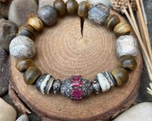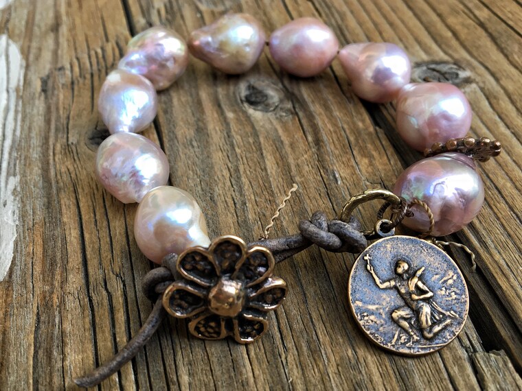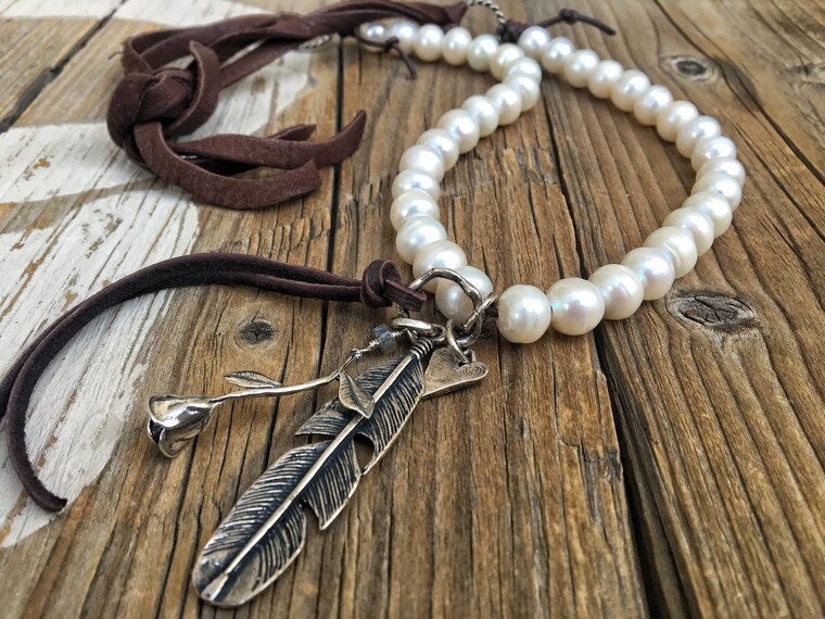 I am a happily married to my wonderful husband, Jim. We have a very full house, with our 25 year old son, 18 year old twins and our Australian Labradoodle, Indee. I thoroughly enjoyed teaching Art at my children's school and studied art in College. I love to resort to what I fondly consider my "quiet place" in my home studio to create these sometimes whimsical, and always soulful, pieces. There, I can watch the birds in our yard, listen to the sounds of our lovely landscape, and allow nature to truly inspire my work. Each piece is truly unique and one of a kind, made with artisan Sterling Silver and handmade Bronze components. quality Edison pearls, semi precious stones and workmanship. Please enjoy!