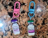 Nothing in my shop is intended as a children's toy. They may contain small parts and may pose a choking hazard. Older children should be fine to use stickers and keychains with adult supervision. Basically, use your head. Children are enterprising creatures when it comes to discovering bold new ways to injure themselves, and if you give them my stuff or they get hold of it and hurt themselves with it somehow, sorry to hear it but that's on you.