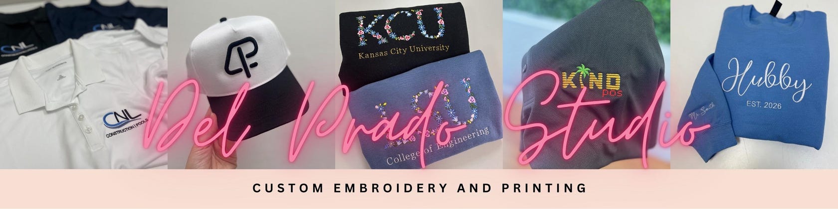 Del Prado Embroidery started with a passion for creating high quality custom apparel that helps people and businesses stand out. What began as small personalized projects grew into serving teams, schools, and local businesses with professional embroidery and printing.