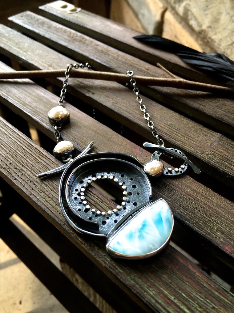 Larimar is one of my favorite stones and I love it combined with blackened silver. It creates an elegant edge. -