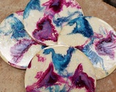 Set of 4 coasters. Deep violet and Sapphire with holo glitter.