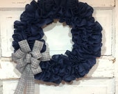 5 out of 5 starsThis is a Christmas present from my daughter.My bedroom is changing to navy colors so this fits in perfectly. She was quick to respond when I had question and was more than willing to resolve it.Very good customer relations.LOVE the wreath.