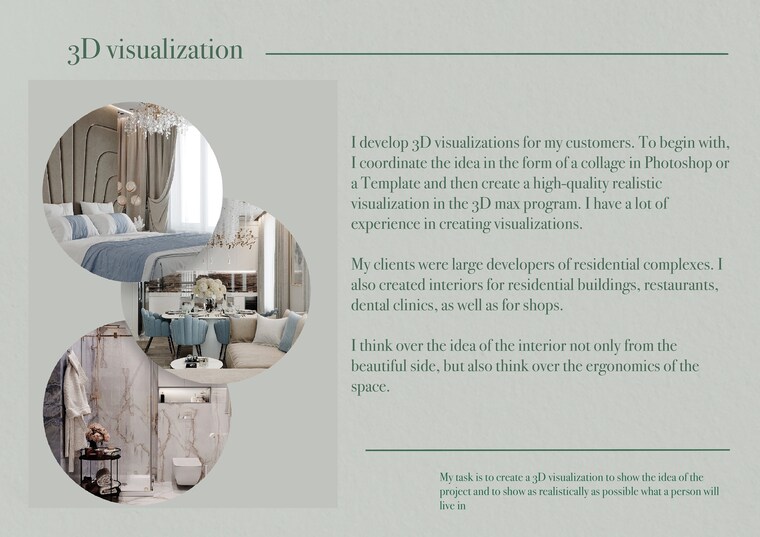 I always provide my clients with several 3D visualization options. I also make adjustments if necessary! I fully understand any changes to the design project.