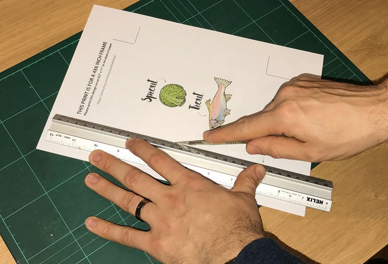 This is one of my sketched designs. Here, I'm demonstrating how my designs can be cut to size using the printouts. -