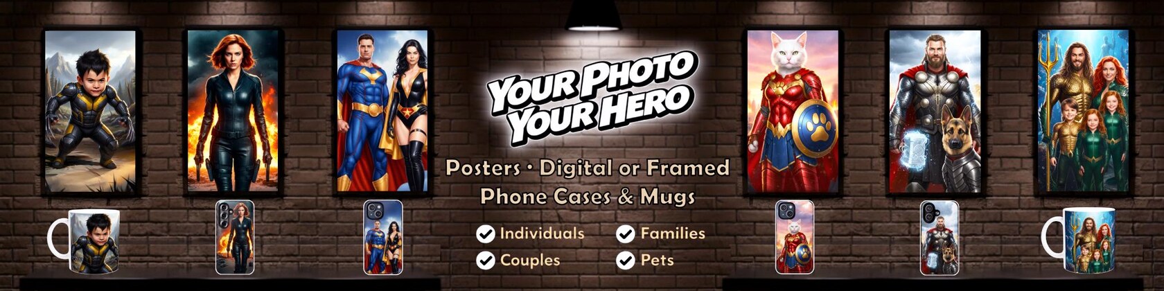 Transforma tus fotos en creaciones heroicas únicas.
