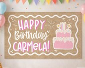 5 de 5 estrellas¡La pancarta quedó preciosa en la fiesta de mi sobrina! Necesitaba un tamaño diferente y el vendedor amablemente me lo cambió. Imprimirla en Walgreens me costó menos de 15 dólares.