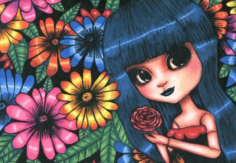 big eye flower girl original art drawing