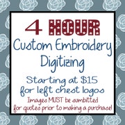 4 Hour Embroidery Digitizing Mon-Fri 9am-3pm EST