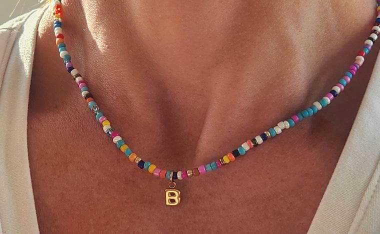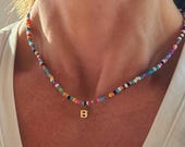 Seed Bead Necklaces are our specialty - choose any bubble letter initial charm to customize for a gift or treat for you. -