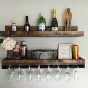 5 out of 5 starsBeautiful bar shelves. They are very sturdy and well built. I’m very happy with my purchase. They look awesome above my bar. The dark walnut stain is extra nice!