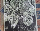 5 out of 5 starsArrived with cardboard on either side keeping it safe in transit and wrapped in tissue paper for a little extra protection. Not to mention that the art itself is beautiful and now has pride of place above my crafting table.