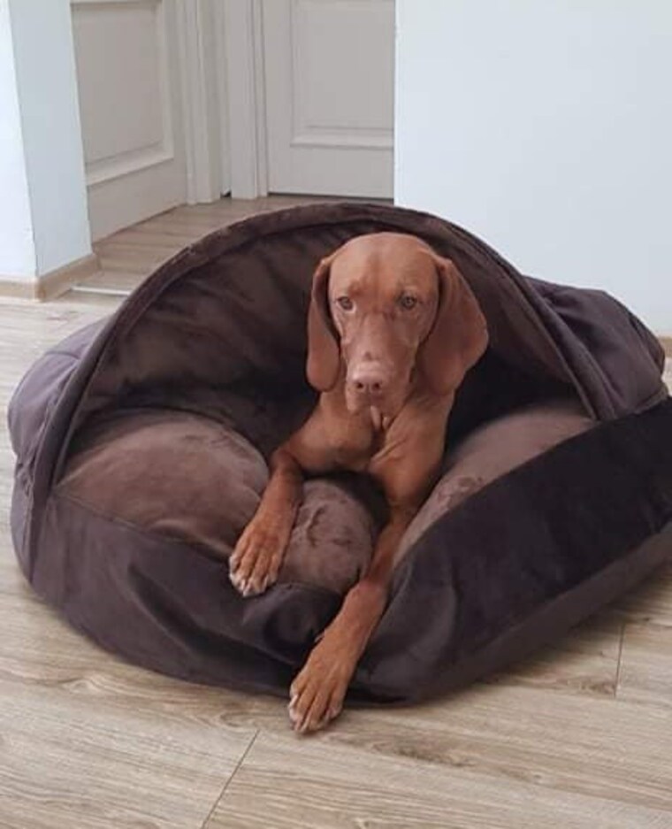 5 out of 5 starsA wonderful and super cosy dog bed! The quality is very good. At first, my dog couldn't figure out that it's a cave and not a simple pillow. But hiding a few treats deep inside did the trick, and now she just disappears in there.