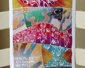 2.) I create an original image — either a giclee print or a mixed media collage or layered print — and it is not added to the collection. Prices usually range from $150 - $500 depending on size, framing, etc.
