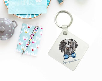 Weimaraner Bowtie Keychain, Puppy Custom Photo Keychain, Fun key chain, Personalized Keychain, Unique Gifts from the Heart, Christmas Gift