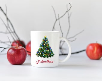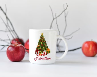 Christmas Tree Merry Christmas mug, Custom mug, Personalized gift, personal drinkware, Hot Cocoa, Present for kids, Perosonal Holiday mug