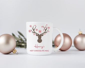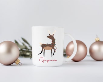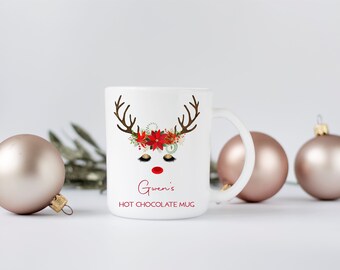 Pretty Reindeer Merry Christmas mug, Custom mug, Personalized gift, personal drinkware, Hot Cocoa, Present for kids, Perosonal Holiday mug