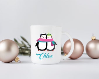 Cute Penguin Merry Christmas mug, Custom mug, Personalized gift, personal drinkware, Hot Cocoa, Present for kids, Perosonal Holiday mug