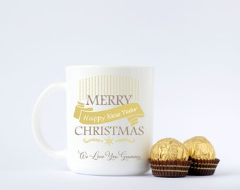 Golden Merry Christmas mug, Custom mug, Personalized gift, personal drinkware, Hot Cocoa, Present for kids, Perosonal Holiday mug