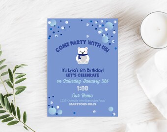 Polar Bear invitation, Winter theme invitation, Polar Bear Party, Winter Wonderland Party, Winter Birthday, Winter birthday invitation
