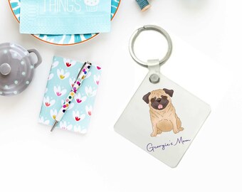 Pug Key Ring, Pug puppy Custom Photo Keychain, Fun key chain, Personalized Keychain, Unique Gifts from the Heart, Christmas Gift