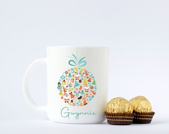 Ornament Merry Christmas mug, Custom mug, Personalized gift, personal drinkware, Hot Cocoa, Present for kids, Perosonal Holiday mug