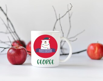 Polar Bear Merry Christmas mug, Custom mug, Personalized gift, personal drinkware, Hot Cocoa, Present for kids, Perosonal Holiday mug