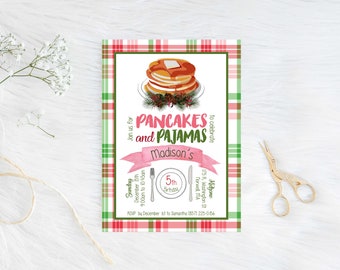Pancakes and Pajamas invitation, Sleepover invitation, Pancake invitation, Pajama party invitation, Birthday invitation, Pancake party