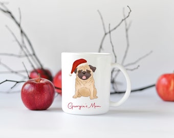 Pug Merry Christmas mug, Custom mug, Personalized gift, personal drinkware, Hot Cocoa, Present for kids, Perosonal Holiday mug