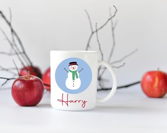 Snowman Merry Christmas mug, Custom mug, Personalized gift, personal drinkware, Hot Cocoa, Present for kids, Perosonal Holiday mug
