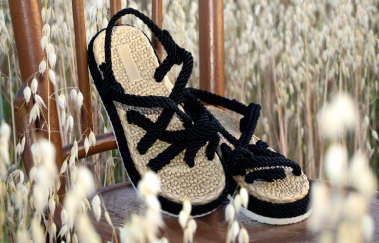 Black - White Rope Sandals | Casual Summer Flats for Women | Slip-On Sandals for Beach |Summer Braided Flats -