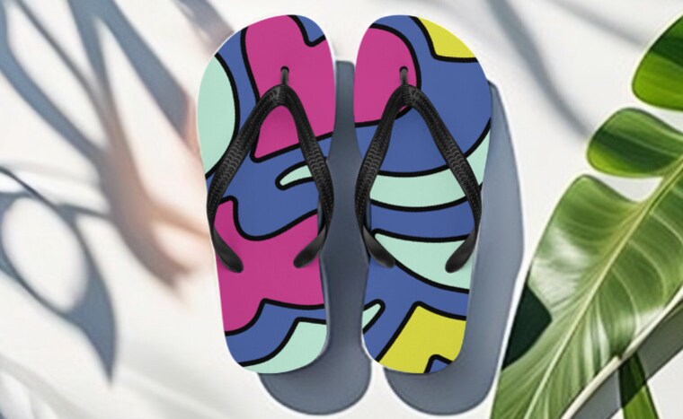 Flip-Flops Multi-Colored Unisex Cushioned Footbed Original Slim Thong Geometric elegance: customized flip flops -