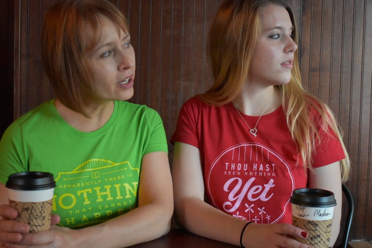 Mother and daughter, Dori and Madison, spent the day with me, including a quick stop for coffee, where I caught this one -