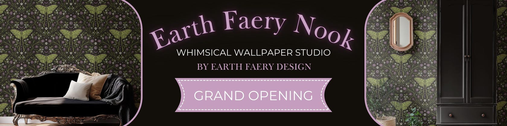 All wallpapers from The Faery Nook are custom-printed through my production partner, using high-quality materials and eco-friendly, water-based inks. Every design is created by me and printed to order, ensuring each piece is made especially for you.