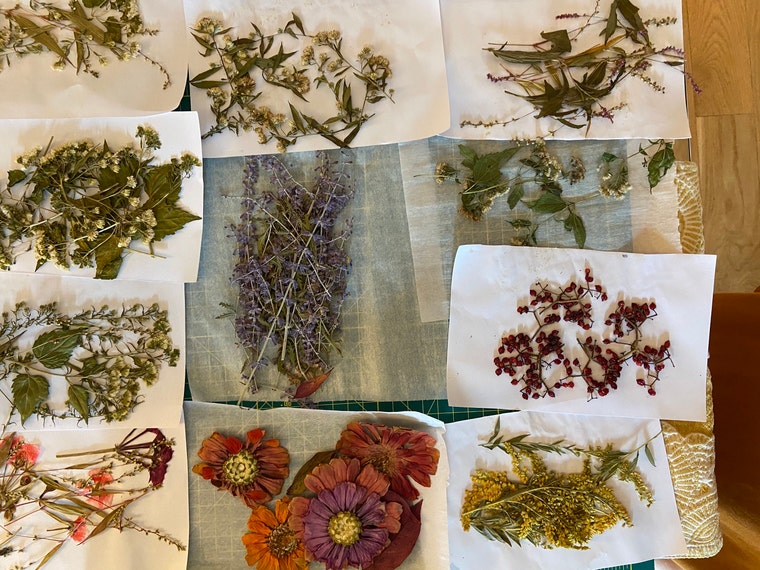 Hand picked flowers after they have been pressed. -