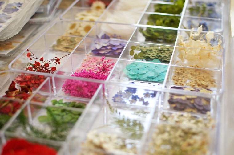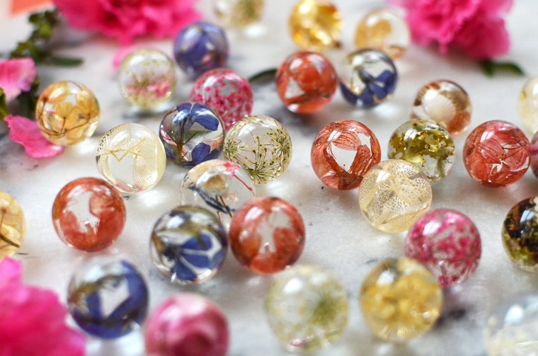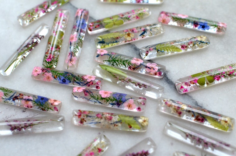 I got obsessed with resin back in 2008 when I introduced myself to a jewelry making through the internet community. I worked mainly with polymer clay and hard acrylics but my absolutely favorite medium was this sticky messy resin, that made my pieces look like clear shiny glass. I loved it so much, that my focus shifted mainly in to that direction. After opening my Etsy store this also became a part-time occupation that allowed me to support this hobby and master new skills. I tried casting different things into the resin and once I tried to preserve dried leaves this way. Botanical pressing was something I did for fun and pleasure. I liked sandwiching flowers and leaves into the heavy books and in the couple of years I had huge collection. They all ended up in keepsake albums, framed on the walls and all over the house. This time I also started wearing them as necklaces and this is how my botanical resin jewelry begun. Next summer I experimented with flowers, dandelions, moss and lichens. My work became all about the art of nature, or rather art of preserving it.